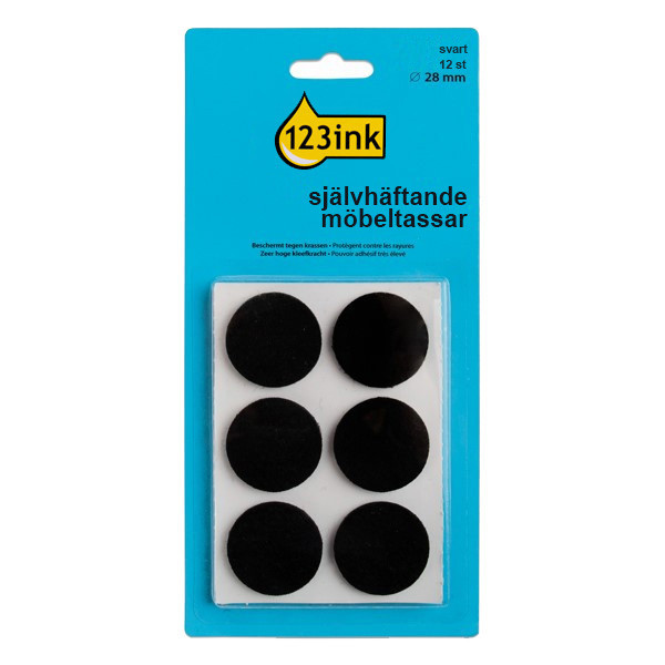 Möbeltassar 28mm självhäftande | 123ink | rund svart | 12st