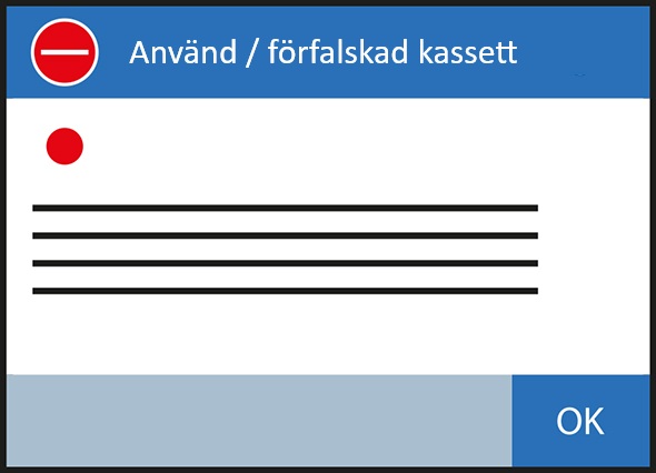 När du har installerat toner från varumärket 123ink kan meddelandet "Använd kassett" visas på skrivarens display. Meddelandet orsakas av det återvunna original chip på tonern från HP. Chipet har redan använts på en annan toner. Du kan ignorera meddelandet. Allt du behöver göra är att trycka på OK.