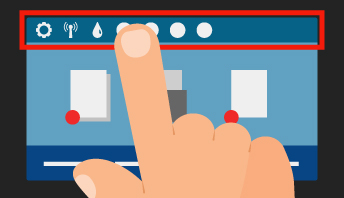 1.    Klicka på den övre mörkblå raden där du ser ett kugghjul, Wi-Fi-symbol och en bläckdroppe.