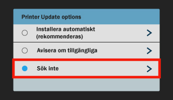 5.    Välj “Alt. för skrivaruppdat.” och sedan ”Sök inte”.