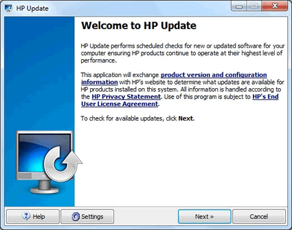 Tryck Start, sedan Alla program, sedan HP och till sist HP Update.